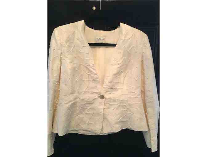Look oh so chic in this never worn, vintage Armani silk, cream colored blazer. Size 10.