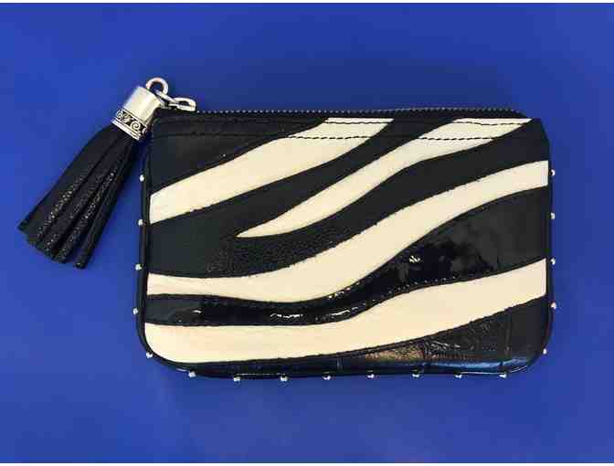 New with tags Brigthon Zebra small black and white leather ZIZI ZIP pouch