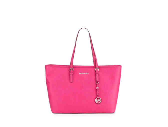 Jet set away or take a walk around town- with this classic Saffiano leather tote, anything you do will be with style. Subtle logo hardware parallels its minimalistic vibe, while elongated top handles ensure easy carrying. Constructed with a roomy interior and ample pockets, this carryall will take you effortlessly from day to night!