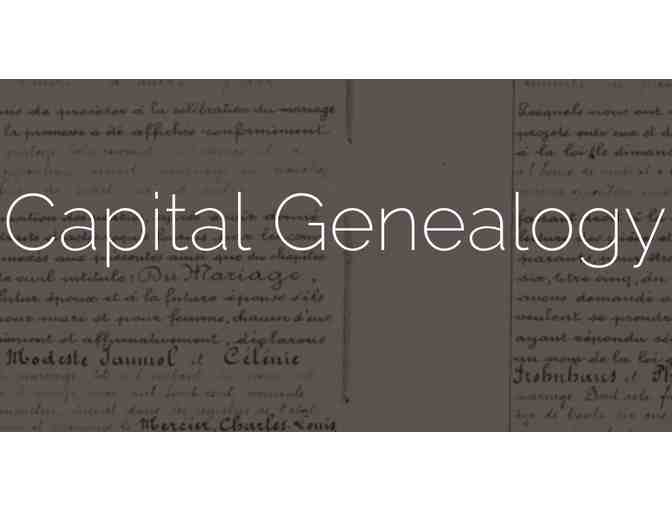 One (1) gift certificate for two (2) hours of Professional Family History Research by Capital Genealogy