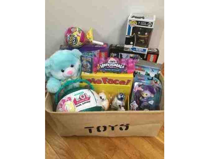 Includes some of the hottest and top-rated toys of 2017/18 for boys and girls! Keep for your family or gift to others for birthdays, Easter, or any occasion. Basket includes: Hatchimals, Fingerling, L.O.L Surprise Dolls Limited Edition Pearl Ball, Pikmi Pops Surprise, POP! Heroes Batman, 9-Set Superhero Figures, Pokemon Cards, Pie Face Game, Star Wars Playdoh Set, Star Wars Lego Set, Friends Lego Set, Stuffed Animal and Large Toy Storage Basket!
