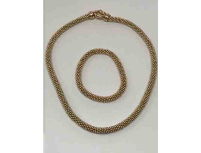 A beautiful necklace and matching bracelet of beaded pure gold.