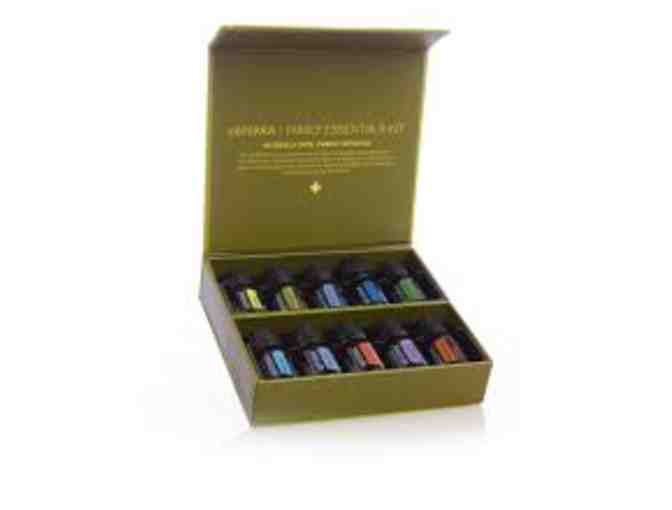 A Family Essentials Kit contains 10 essential oils and blends - the "feel better" essentials in 5ml bottles along with a quick usage guide for each essential oil and blend. Lavendar, Lemon, Peppermint, Melaleuca, Oregano, Frankincense, Deep Blue, doTERRA Breathe, DigestZen, doTERRA On Guard.