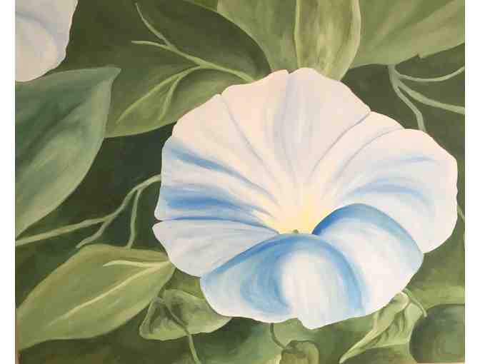 A beautiful oil painting of a morning glory by renowned local artist Mary Telfer. You are gonna want to wake up to this every morning!!