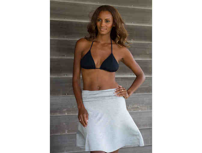Unidress turns into a skirt! Fold down top to give appearance of hips being wide and waist smaller.