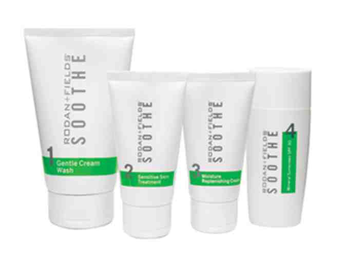Rodan+Fields Soothe Regimen, for visible redness, dryness and sensitivity. The set inlcudes the SOOTHE gentle cream wash, SOOTHE sensitive skin treatment, SOOTHE moisture replenishing cream and SOOTHE mineral sunscreen broad spectrum SPF 30.