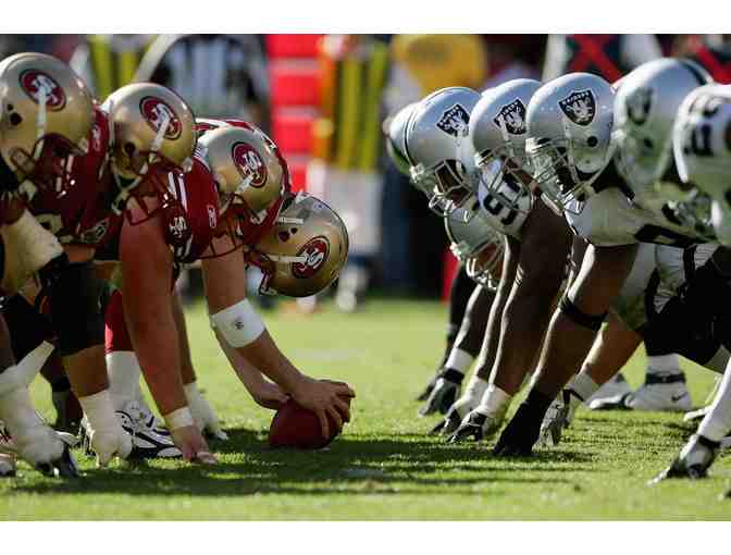 Two tickets to the Battle of the Bay - Oakland Raiders vs. 49ers. Seat location: section 210, seats 21 and 22. Experience the 49ers beat the Oakland Raiders at the Levi's Stadium! Date and time to be confirmed. Donated by Baywood's Lee/Li Family.
