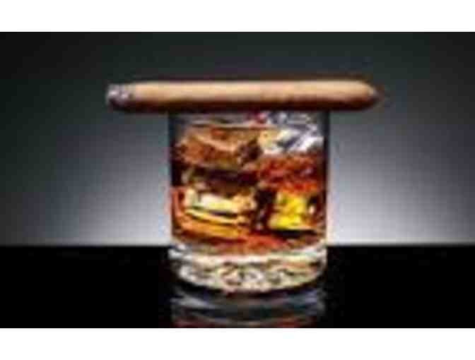 Eight Cigars by Fuente, Huffman and San Cristobal Also a travel humidor by Thompson Cigars and a bottle of Four Roses single barrel bourbon.