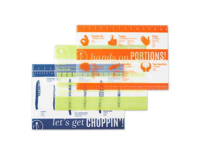 Our Flexible Cutting Mat Set is perfect for light prep tasks like cutting vegetables and seasoning meat. Each 11” x 15” cutting mat features educational information to help new cooks learn knife skills and prep techniques. The flexible material also lets you funnel ingredients right into your recipe, and makes them easy to store!