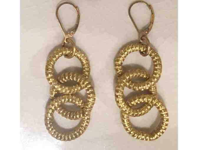 Lovely gold fill link dangle earrings from famed jewelry designer Marcie D. Features textural details and lever back closure. At Marcie D Jewelry, each piece represents wearable art from yesterday and today!