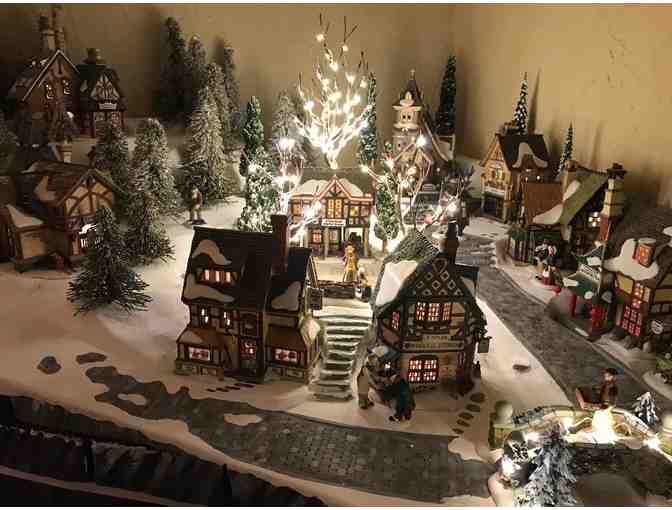This is a custom built ten-piece village display using Dept 56 houses, trees, people, etc. Donor will visit your home, take measurements and build the display. The display includes a platform shaped into a small town with lighted buildings, lit trees, and other accessories. We will discuss general theme (Dickens, New England, etc) and layout. The final product (approx. 12 sq ft) will be delivered by Thanksgiving 2018 in time to display at Christmas.