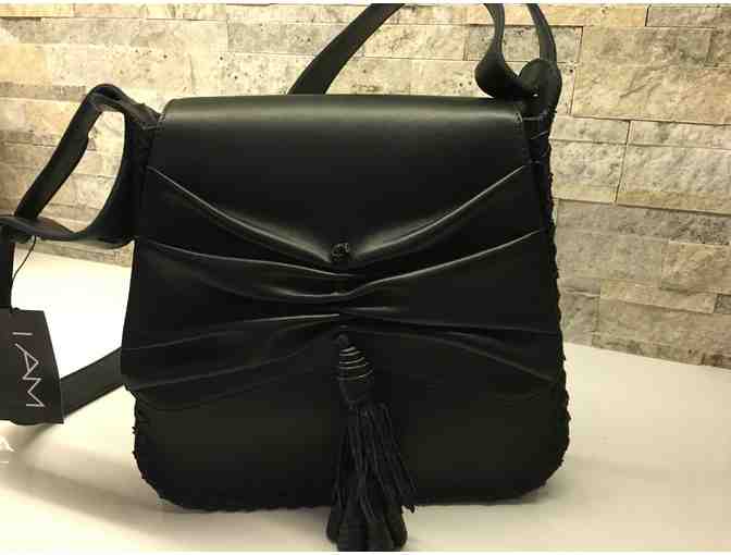 Want the ultimate hip designer cross body bag? This luxurious black nappa leather & snake trim cinched cross body bag by designer Jill Haber is a beauty!