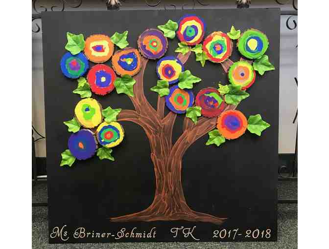 Mrs. Briner-Schmidt's "Tree of Friendship". Each of the students painted a wooden circle that was added to the painted tree. Faux leaves were then added to the painted tree to complete the 3D tree