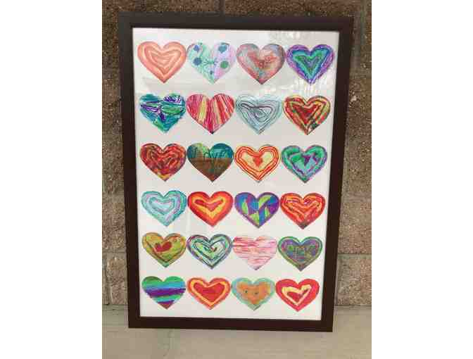 Mrs. Jensen's Class "Hearts". Each of the students designed and colored their own heart that were put together into one frame.
