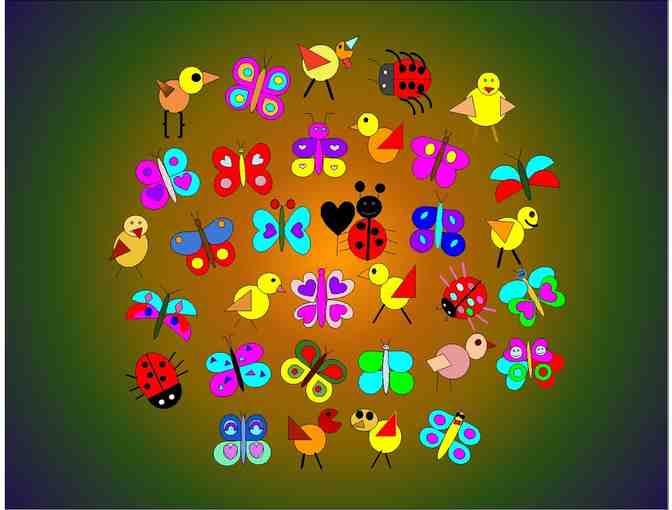 Digital art created in Mrs. Marinescu’s Technology class by the 1st grade students. Printed on canvas, this joyful, colorful tableau is visual enchantment! Using the simple graphic design tools of a word processing application and their unlimited imagination, the children combined shapes and colors in the most original and charming ways to create nature-inspired drawings. All the individual drawings were then put together to make up this vibrant representation of Spring. Great as wall décor for your home or a a present!