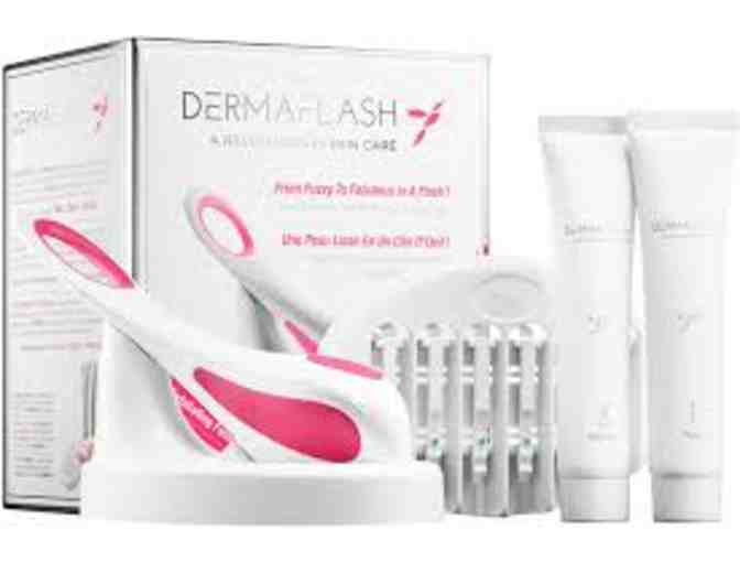 Men Shave; Women Flash! Use Dermaflash Exfoliating Facial Treatment to instantly and painlessly creates a flawless canvas for skincare and makeup by removing the oldest layer of dead skin cells, built-up debris and peach fuzz with a subtle sonic vibration and proprietary Edge. This set includes Dermanflash, charging base and cord, Prep face wash and Smooth hydrating lotion and six (6) Edges.