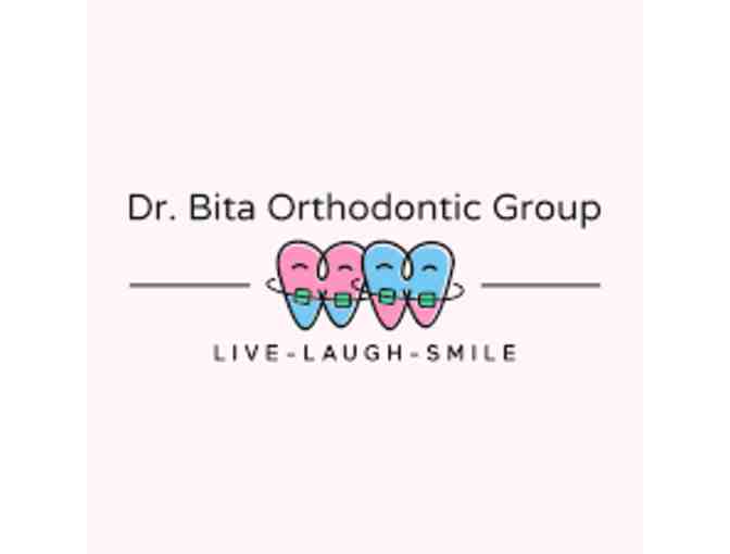 Live - Laugh - Smile with a basket from Dr. Bita Orthodontic Group that includes a Waterpik Waterflosser, Orthodontic treatment coupon, water bottle and oral hygiene products.