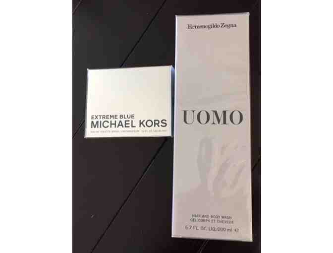 Great products for men! Ermenegildo Zegna "Uomo" Hair & Body Wash and Michael Kors "Extreme Blue" Eau De Toilette Spray. New in boxes and protective plastic.