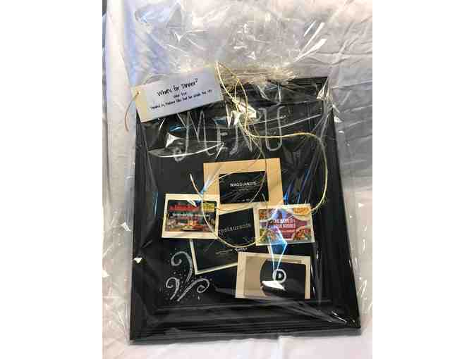 Included: Gift cards to Maggiano's, El Ranco Grande, Matt the Miller's Tavern, Noodles and Company, and Dewey's Pizza.