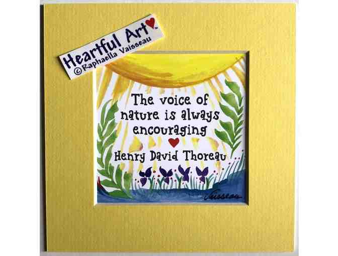 5x5 print of Henry David Thoreau quotation, "The voice of nature is always encouraging." Art by Raphaella Vaisseau.