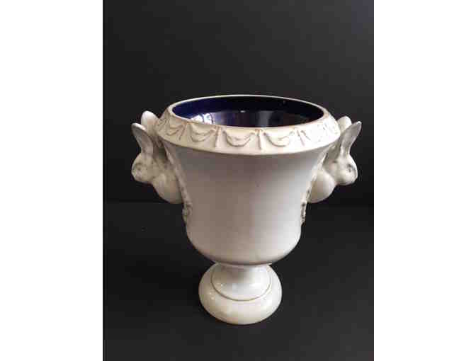 Do you love French ceramics? Particularly fond of rabbits? Then this set is for you! Featuring a beautiful white Provençal-style urn decorated with two rabbit heads and a baby rabbit hook, this dreamy combo will bring a charming touch to any home.