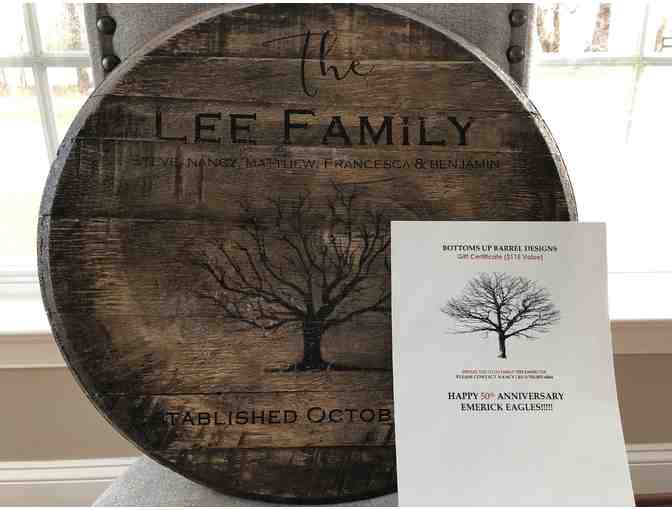 Authentic bourbon barrel tops personalized for you. Makes a great gift and addition to your home!