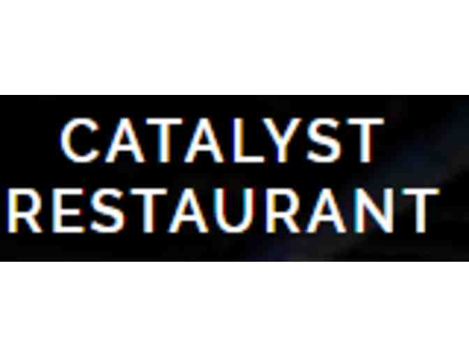This card is redeemable for food, beverage and gratuity at Catalyst Restaurant. The card cannot be replaced if lost, stolen or destroyed, is non-refundable and is not redeemable for cash.