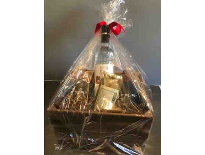Includes (2) bottles of Toma Artisnal Bloody Mary Mix, (1) bottle of Kettle One Premium Vodka, and a jar of stuffed olives.