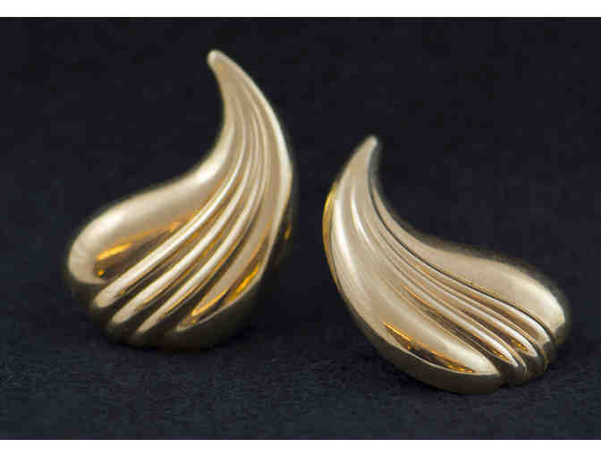 Abstract hollow ribbed clamshell design gives these earrings a sleek and sophisticated look. Earrings are marked 14K 585. For pierced ears, in nice used condition.