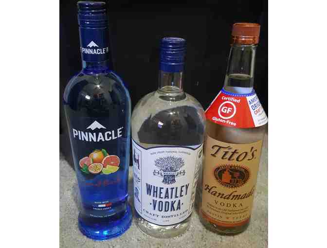 3 different kinds of vodka for you to try!! 750ml of Pinnacle Tropical Punch, 750ml of TITO'S, 1 liter of Wheatley vodka!! All donated by Hi-Test Liquors right here in Elbert!!