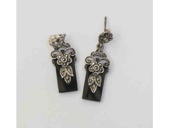 Antique Onyx, Marcasite, and Sterling Silver Earrings