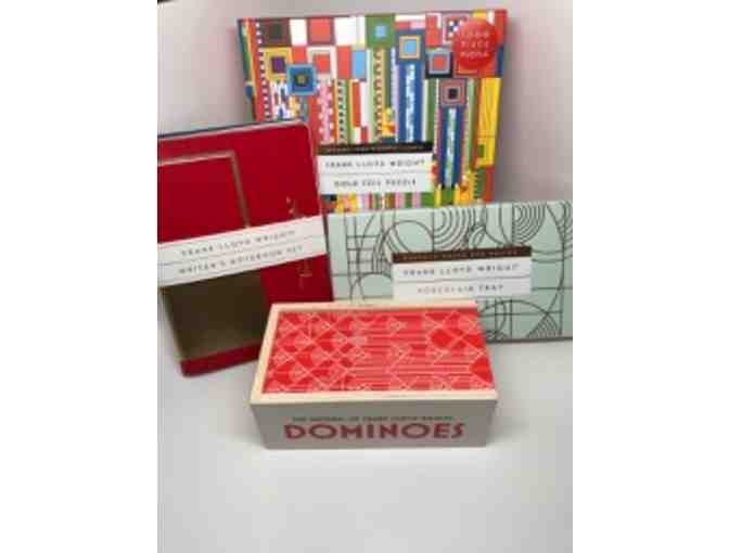 Frank Lloyd Wright Notebook Set, porcelain tray, Fold Foil puzzle, Patterned Dominos