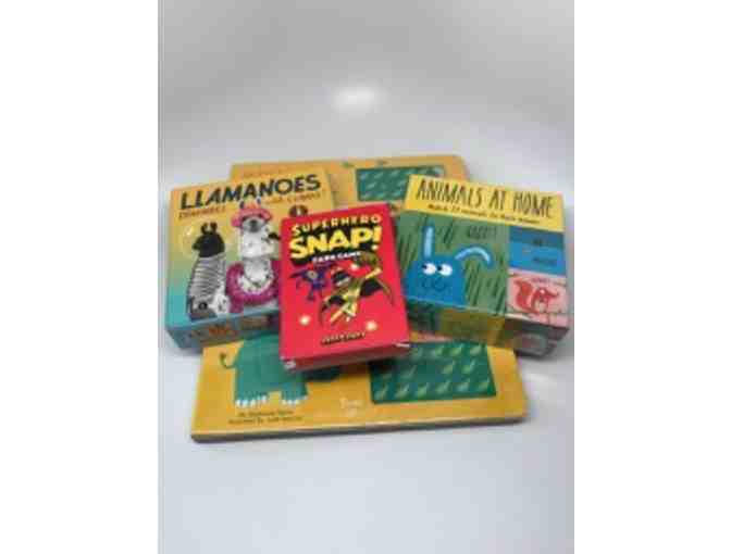 A whole bag full of puzzles and hours of puzzle-solving fun! Includes: Llamanoes, Dominoes with Llamas, Superhero Snap Card game, Animals at Home match game, Animals and Activities game book, Map of the USA puzzle, Make and Move Mega Dinosaurs, Rainforest Search and Find Puzzle.