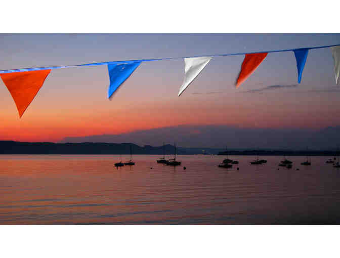 A framed photograph "Flags over the Hudson" by local photojournalist Craig Ruttle