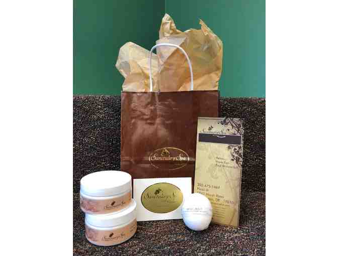 Relax and enjoy a $100 gift card to Sanctuary Spa located in North Wilmington. Gift bag also includes a variety of spa products.