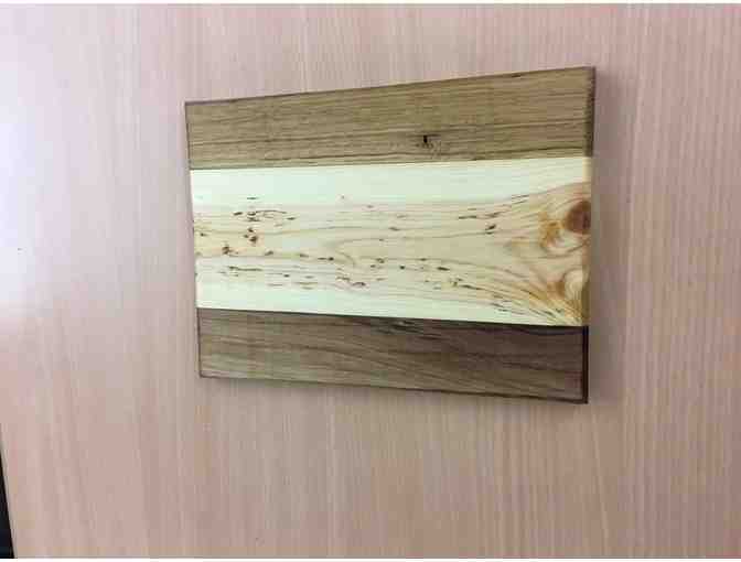 This wood cutting board is hand made by a student in wood shop class at Elbert School. A perfect addition to your kitchen.