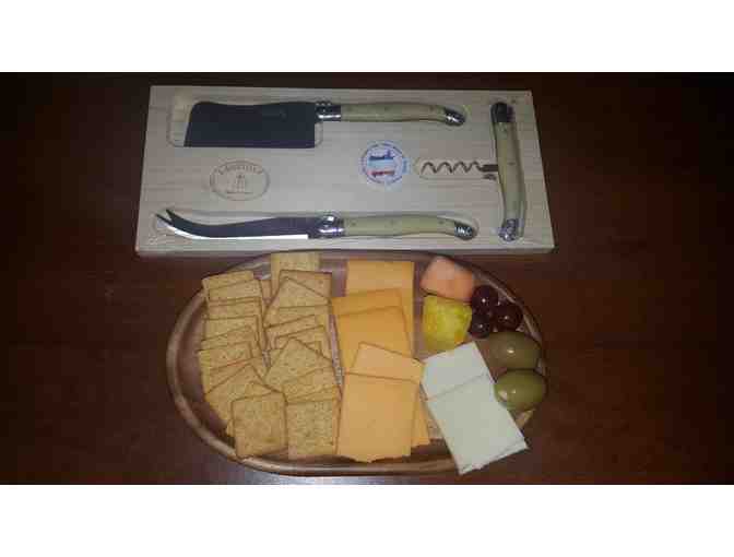 Beautiful wooden tray for cheese and crackers PLUS cheese knife and corkscrew set!!!
