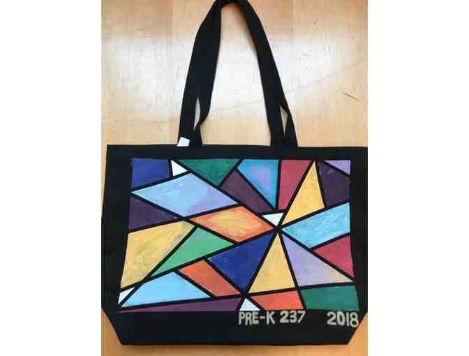 Kaleidescope-like tote decorated for Marlee's PK class!