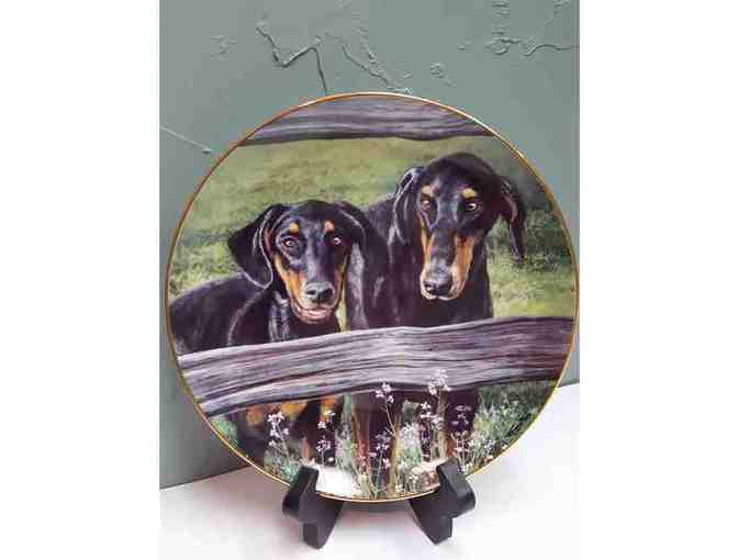 This plate is by Jeremy Paul - from the limited edition Doberman Pinschers series by the Danbury Mint. These plates are no longer in production.