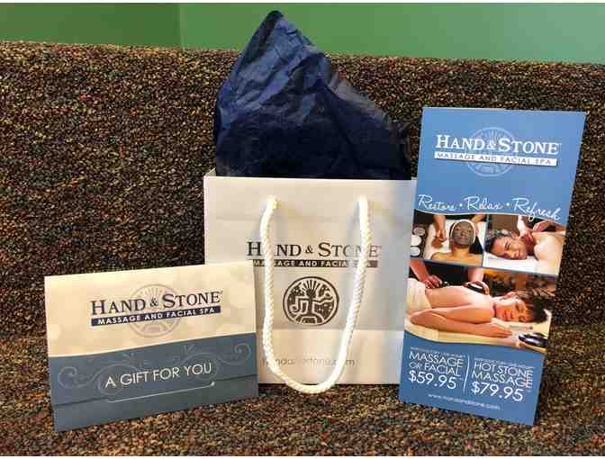 Leave the stress behind! Enjoy a therapeutic and customized 50-minute massage for relaxation and wellness at the Hand & Stone Massage and Facial Spa. Hand & Stone's certified massage therapists will personalize your massage so it is just right for you.