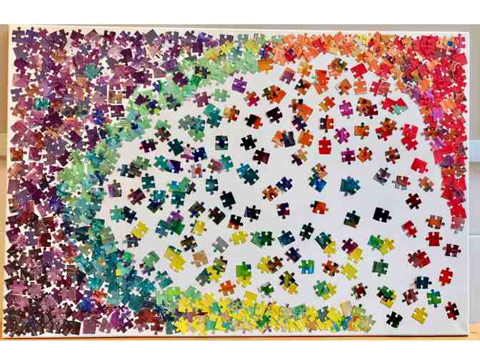 Kids from Lindsey & Caroline's first grade class had a blast hand-painting puzzle pieces for this colorful collage!