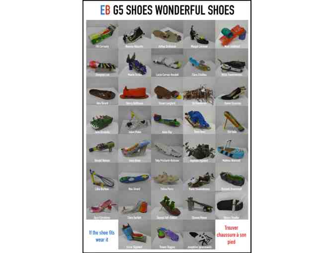 A 24x36" framed poster displaying all the incredible art shoe creations of G5 students!
