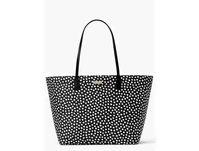 SIZE 11.4" h x 13" w x 6.3" d drop length: 9.4" MATERIAL grainy vinyl with matching trim capital kate jacquard lining 14-karat light gold plated hardware