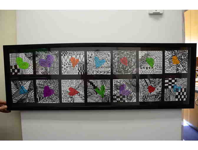 With black marker and colored paper hearts, Room 8 students created some beautiful art squares that were assembled into a cool frame.