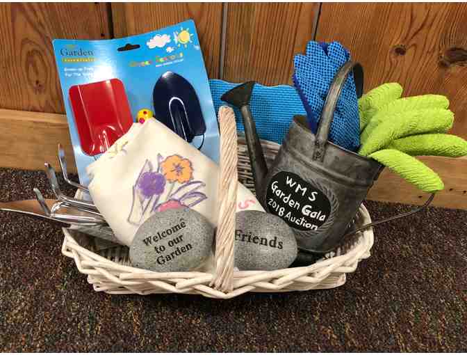 Enjoy a day of gardening using the tools provided in this garden-themed basket from the Extended Care students. This gift includes a student-designed, floral apron with the children's names.