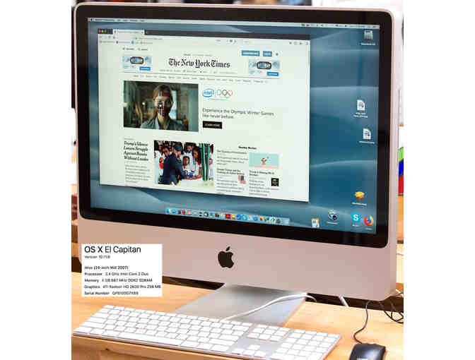Apple computers really hold their value! iMac is 10-years old, with a 2.4 GTZ processor, 667 MHz, 4 GB memory, running OS X El Capitan, keyboard and mouse are included.