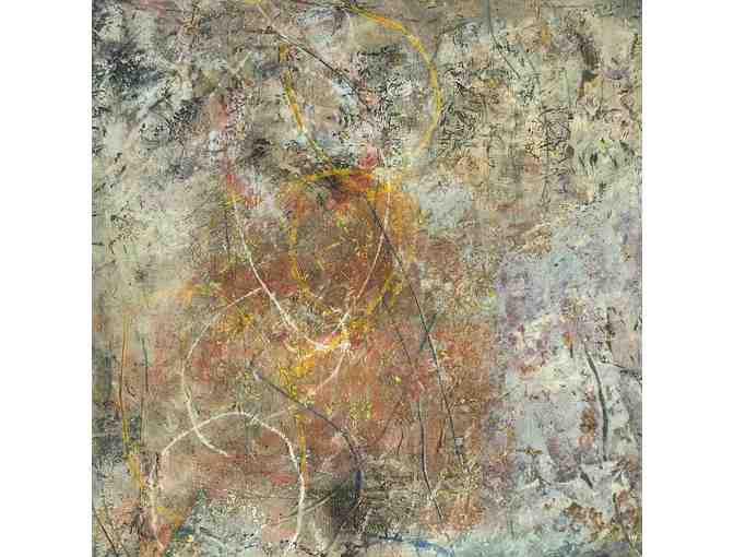 You are bidding an art piece called "Inverness" made on mixed media and cold wax on panel 16" x 16" artwork by Laura Deem.