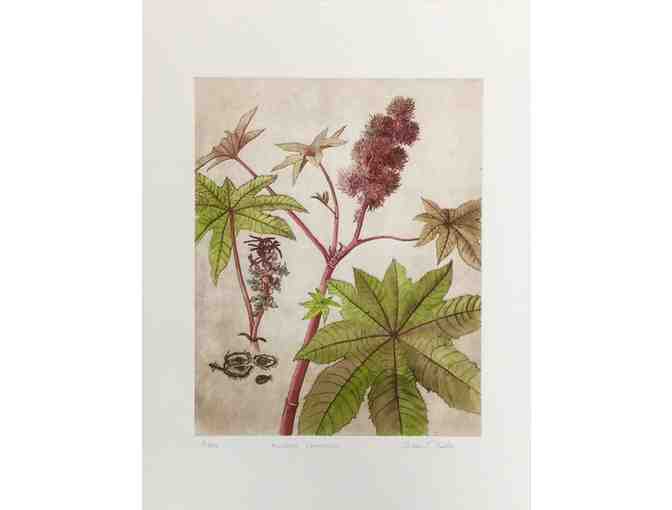 "Castor Bean"- Original Hand Colored Etching by Susan T.Fisher