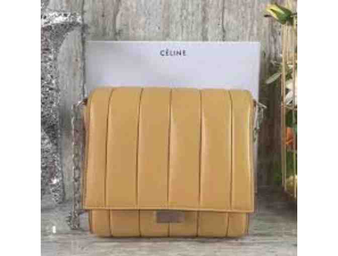 Leave home in style with this luxurious, Camel colored, quilted lambskin Celine handbag. With a vertical quilt, lambs wool blend chain strap, this handbag is a show stopper!