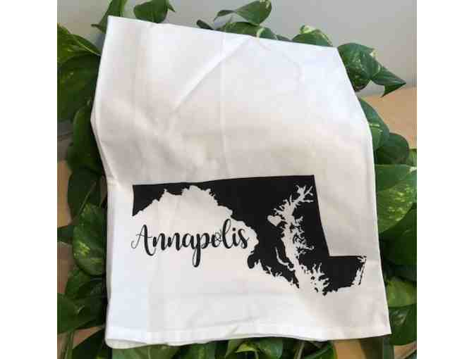 Add a little bit of Annapolitan whimsy to your home with this black and white tea towel!